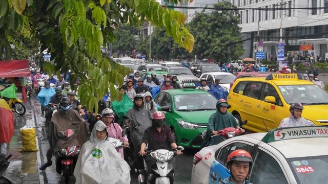 Xe cộ ken đặc trên đường, di chuyển rất chậm