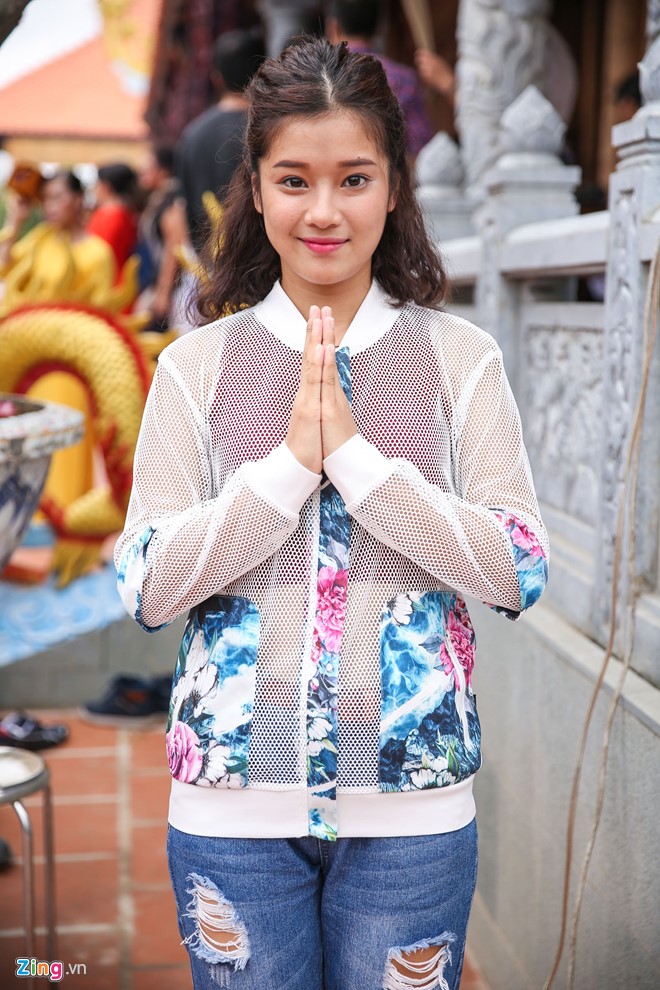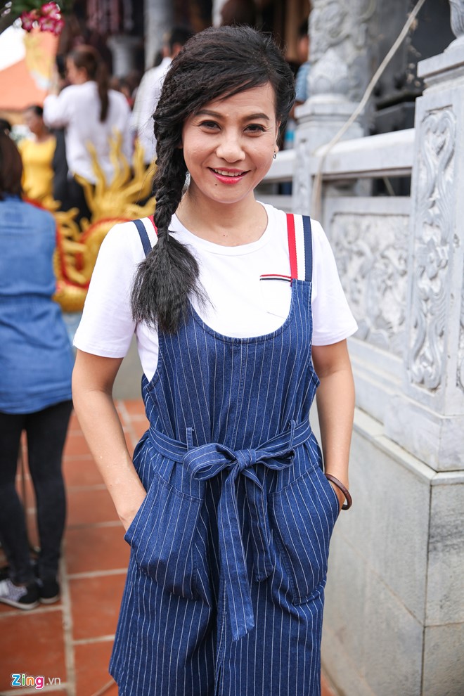 Diễn viên Kiều Trinh dù bận quay phim nhưng 6h sáng đă có mặt để cúng Tổ. Chị biết ơn những ǵ Hoài Linh đă làm cho các nghệ sĩ để họ có nơi tề tựu trong ngày quan trọng. Sau khi thắp hương, chị và con gái xin lộc là lư hương Tổ.