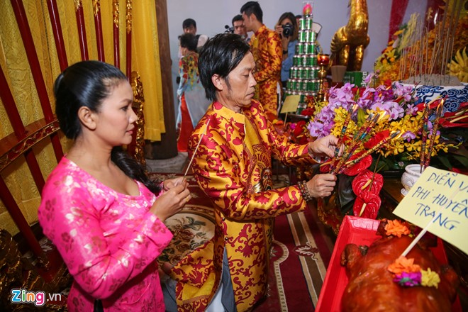 Cát Phượng bày tỏ sự kính phục và hănh diện v́ những ǵ Hoài Linh đă làm được cho nghề. Chị và Kiều Minh Tuấn liên tục có mặt ở nhà thờ để phụ đàn anh công đoạn chuẩn bị.