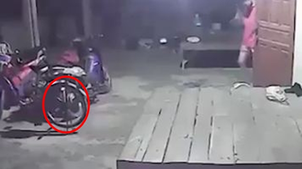 Đoạn video do camera giám sát ghi lại tại Thái Lan cho thấy chiếc xe đạp được dựng ngoài sân cạnh hai chiếc mô tô. Sau đó, bàn đạp và bánh sau của chiếc xe đạp bất ngờ quay tròn bí ẩn mà không có ai tác động.