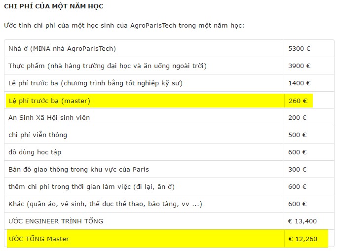 Phải cần bao nhiêu tiền một năm để học trường Agro Paris Tech