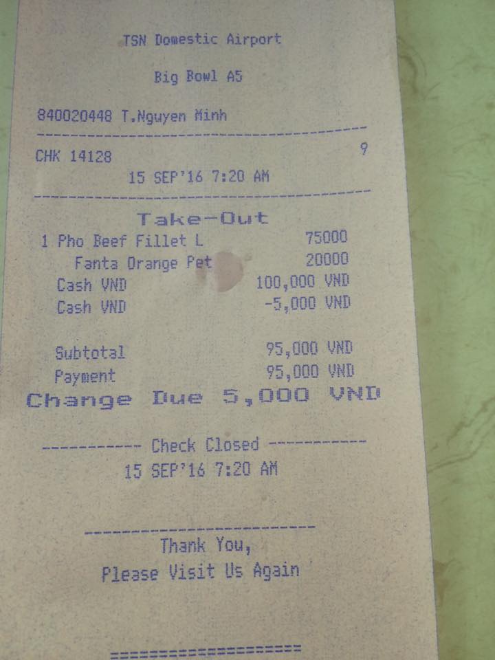 Mới đây, trên mạng xã hội, chị L.H. ở TP Hồ Chí Minh có chia sẻ câu chuyện ăn phở ở sân bay mà chị vừa mới trải nghiệm vào sáng ngày 15/9 khi chờ máy bay bay ra Hà Nội công tác. Sau khi thưởng thức xong tô phở, chị đã “chào tạm biệt và hứa sẽ không bao giờ ăn phở ở sân bay Tân Sơn Nhất” nữa.