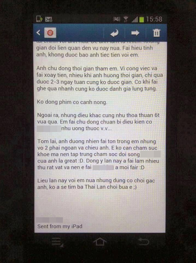 Trong nội dung bức thư này có nhắc khá nhiều đến sex, đến đời sống tình dục và làm thế nào để thỏa mãn nhu cầu cho vị đại gia kia, khiến nhiều người phải giật mình. Hiện vẫn chưa rõ thực hư của bản hợp đồng này nhưng nó đang được share chóng mặt trên mạng xã hội.