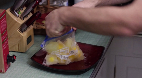 - Khi những quả trứng này đã đóng băng, bỏ ra cho vào túi đựng và kéo kín lại.