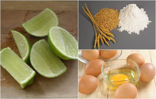 – Dùng dao cắt chanh làm đôi, rồi vắt lấy nước cốt chanh cùng bột mì cho vào bát lòng trắng trứng đã được đánh tan.