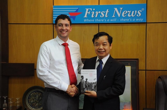 GS-TS Edward Miller trao cuốn sách cho ông Nguyễn Văn Phước, Giám đốc Công ty First News - Trí Việt