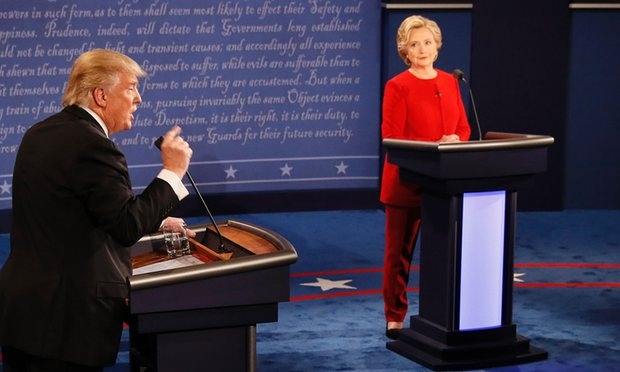 Donald Trump và Hillary Clinton trong cuộc tranh luận hồi đầu tuần.
