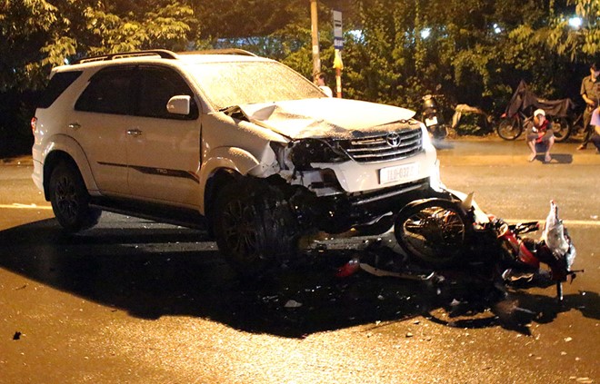 Va chạm làm xe máy dính chặt vào ôtô. Nạn nhân bị thương được người dân đưa đến bệnh viện cấp cứu nhưng đã tử vong.