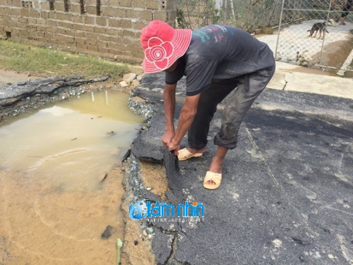 Nói về việc đoạn đường bị mưa làm xói lở, trôi hết đất đá, các thảm nhựa bị bong trọc, thì ông Tài cho biết, do mưa lớn, nước chảy mạnh có thể là nguyên nhân gây nên tình trạng đó.