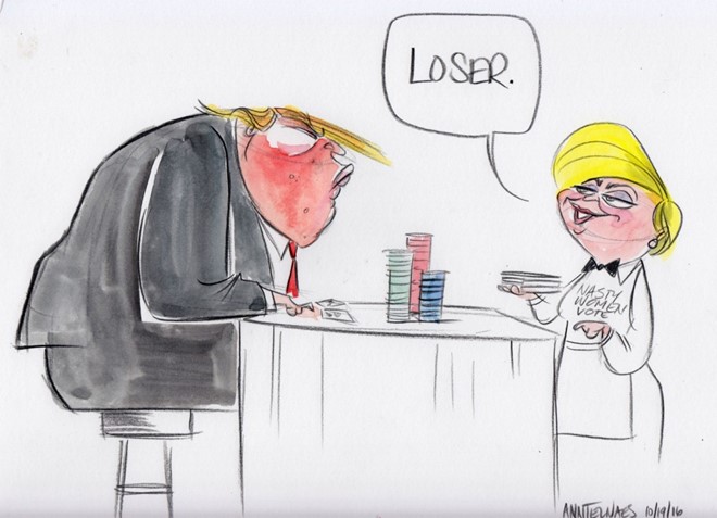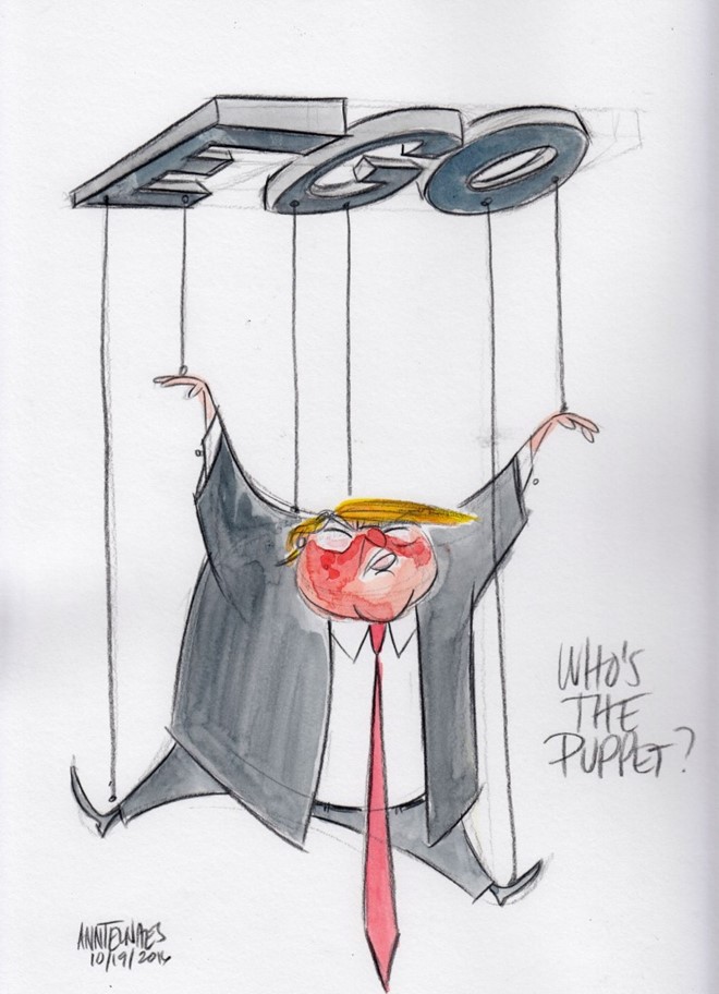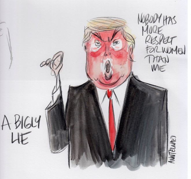 Những họa sĩ đã kịp thời phác họa chân dung của ứng viên Tổng thống Mỹ Trump sau phiên tranh luận trực tiếp trên truyền hình lần thứ 3 và cũng là cuối cùng. Bộ mặt, ánh mắt và thân hình cảu ông Trump được lột tả một cách khôi hài. Bạn sẽ không khỏi "cười phá lên" khi xem những bức biếm họa này.
