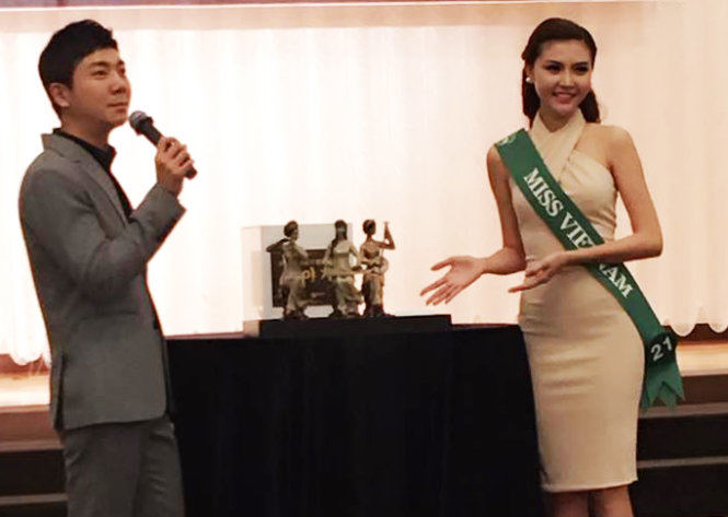 Ngọc Duyên trong buổi đấu giá từ thiện tại Hàn Quốc