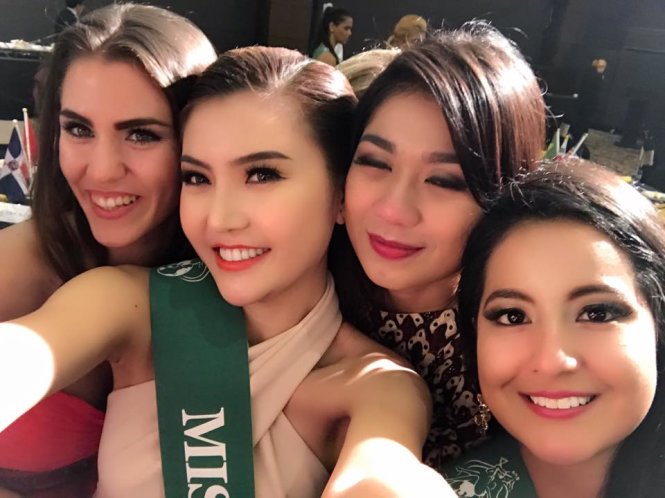 Ngọc Duyên chụp ảnh "wefie" cùng các người đẹp khác