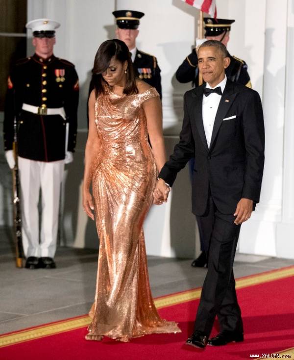 Tối 18/10, Tổng thống Barack Obama tổ chức quốc yến cuối cùng để thiết đãi Thủ tướng Italy Matteo Renzi và phu nhân đang có chuyến thăm Mỹ. Tại buổi tiệc, bà Michelle Obama thu hút mọi ánh nhìn khi xuất hiện với bộ đầm lấp lánh hiệu Versace. Một số tạp chí lớn còn ví đây là "bộ đầm nữ thần".