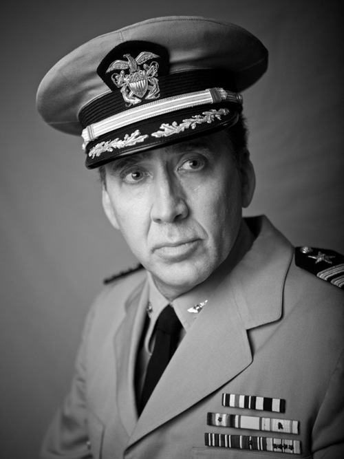 Nicolas Cage (vai thuyền trưởng Charles B. McVay III) trong bộ phim Chiến hạm Indianapolis: Thử thách sinh tồn