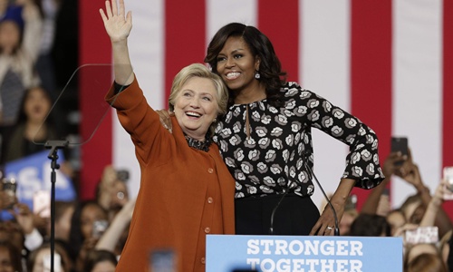 Hai người phụ nữ, từng ở thế đối đầu, trên sân khấu vận động tranh cử ở thành phố Winston-Salem, bang Bắc Carolinna, đã ôm chầm lấy nhau như những người bạn thân thiết. Họ thậm chí còn gọi đối phương đầy âu yếm là "cô gái của tôi" trước sự ngưỡng mộ của hơn 10.000 người ủng hộ. Những hiềm khích quá khứ dường như tan biến khi đệ nhất phu nhân Mỹ lần đầu tiên cùng tham dự sự kiện vận động tranh cử cử của bà Clinton, theo New York Times.