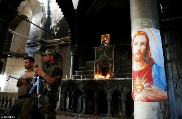 Buổi lễ này cũng có những quân nhân chính phủ Iraq vốn là các tín đồ của đạo Cơ đốc giáo. Các thành viên tổ chức khủng bố IS đã bị đánh bật khỏi nơi này chỉ một vài ngày trước đây.