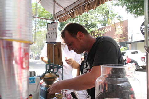 Vincent ở VN đủ lâu để biết rằng cà phê cóc trên thị trường thường 'vàng thau lẫn lộn', thực khách vừa uống vừa lo nên tự mình làm ra những loại thức uống sạch với nguyên liệu từ bạn bè.