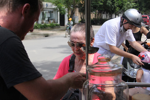 Tôi bật cười với slogan trên chiếc áo phông Vincent: “Give us a million dollars!” (Mang cho chúng tôi một triệu đô) và nhủ rằng con số đó cũng không xa nếu anh chàng này cứ tiếp tục làm việc chăm chỉ. Vincent đại diện cho một nhóm đàn ông phương Tây, không ngại khó lập nghiệp dù tuổi không còn trẻ và có trái tim luôn ở tuổi 20.