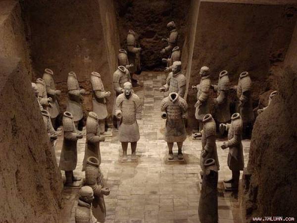 Vị hoàng đế đầu tiên của Trung Hoa qua đời vào tháng 9/210 trước Công nguyên, được chôn cùng với hàng trăm nô lệ, tì thiếp, vàng bạc, trang sức cũng như hàng nghìn bức tượng đất nung tinh xảo. Khu lăng mộ lớn hơn cả Kim Tự Tháp Ai Cập to nhất.