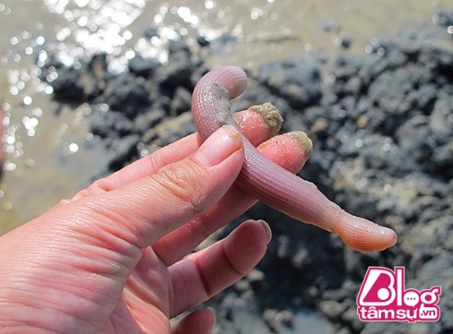 Hỏi ra mới biết đây chính là loài sá sùng hay một số nơi còn gọi là giun biển hay sống ở bãi cát ven biển nơi thủy triều lên – xuống tạo thành những đụn cát nhỏ.