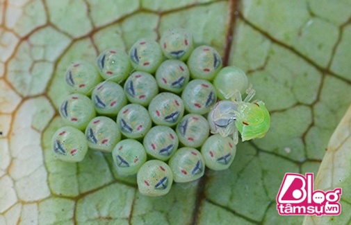 Sau khi nở, bọ con có màu xanh nhạt như trong hình.