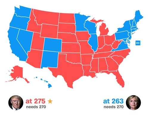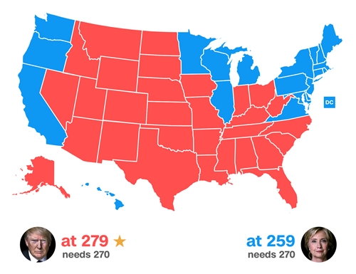 Đây là bối cảnh trong mơ của Trump bởi nó sẽ xóa bỏ màu xanh, tức sự ủng hộ cho Hillary Clinton, ở các bang Winconsin, Michigan và Pennsylvania, nơi ông không thể vượt qua ứng viên đảng Dân chủ trong các khảo sát.
