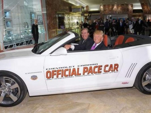 2. 2011 Chevrolet Camaro Indianapolis 500 Đây là chiếc xe đua rất được Trump tin dùng. Nó sở hữu động cơ V8 dung tích 6.8 lít công suất 426 mã lưc, bánh xe 20 inch bằng nhôm, và bọc trong lốp hiệu suất cao.