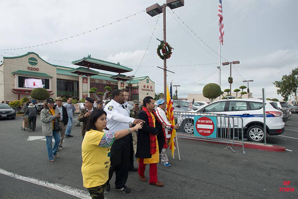 Lê Đình Hùng qua Mỹ theo diện đi du lịch và sau đó tới khu Bolsa để thách thức Cộng Đồng là mặc áo cờ đỏ. Sự thách thức nơi công cộng sẽ đưa tới đánh lộn, gây lộn, (Penal Code § 415(1)) hoặc cố ý gây tiếng ồn bất hợp lý ngay giữa nơi công cộng (Penal Code § 415(2)).