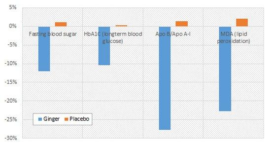 Gừng cũng giúp cải thiện đáng kể chỉ số HbA1c (một dấu hiệu cho lượng đường trong máu dài hạn), dẫn đến giảm 10% trong khoảng thời gian 12 tuần.