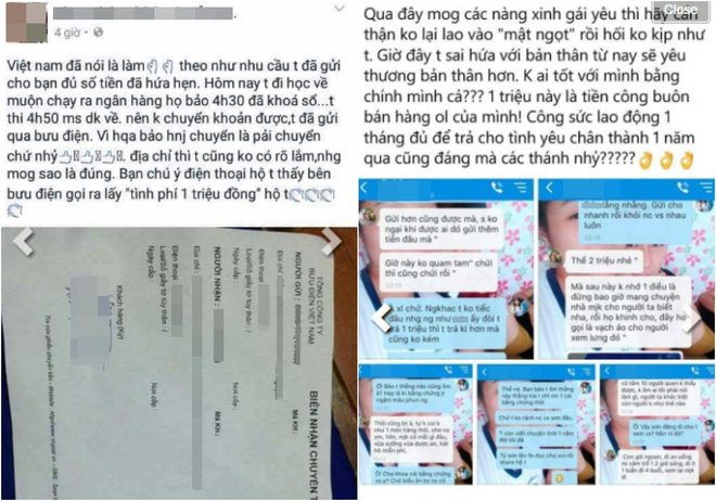 "Xin thưa 500 anh em. Chắc từ nay không dám yêu vì lo lặp lại vụ chia tay người yêu cũ đòi 'tình phí' như thế này lắm ạ. Câu chuyện kết thúc, chàng đòi trả lại quà + muốn quà và bây giờ là thêm một triệu cho cuộc tình hơn một năm nay.