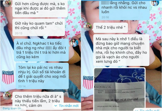 Theo loạt tin nhắn được đăng tải, chàng trai còn vòi vĩnh đòi 2 triệu từ cô gái: "Gửi hơn cũng được mà, S không ngại khi ai đó gửi thêm tiền đâu", "cho thêm 1 triệu nữa đi, S thiếu tiền lắm. 2 triệu nha hihi cảm ơn", "thế 2 triệu nhé?", "giờ này không quan tâm, chửi thì cũng đã chửi rồi"…