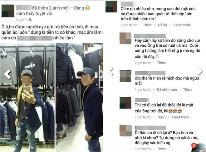 Tuy nhiên, câu chuyện tưởng chừng như kết thúc thì chàng trai lại đăng tải lên trang cá nhân với hình ảnh mua áo mới kèm theo nội dung: "Ô ô, hôm nay được người yêu cũ gửi trả tiền ân tình, đi mua quần áo luôn. Đúng là tiền tình cảm có khác, mặc ấm lắm à. Cảm ơn K.K.K lắm à". Đến đây, dân mạng đã chính thức "chào thua" vì cách hành xử của chàng trai.