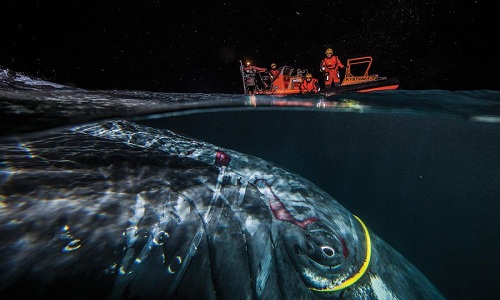 Sợi dây cáp màu vàng quấn quanh đầu con cá voi lưng gù 30 tấn. Ảnh: Audun Rikardsen.