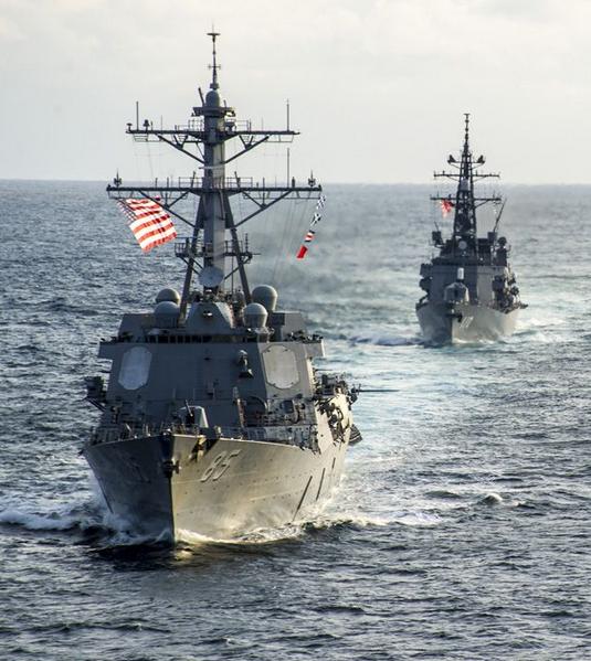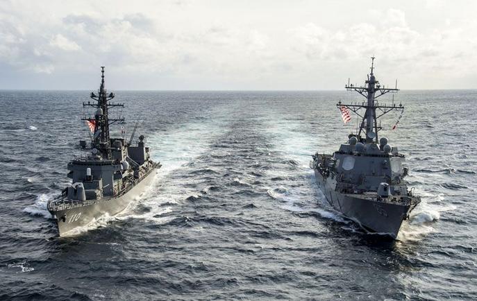 Tàu khu trục Mỹ và Nhật Bản tiến hành tập trận ở Tây Thái Bình Dương. Ảnh: Cankao