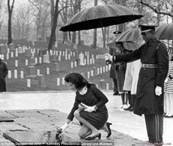 Bà Jackie đặt hoa lên mộ chồng tại Nghĩa trang Quốc gia Arlington.