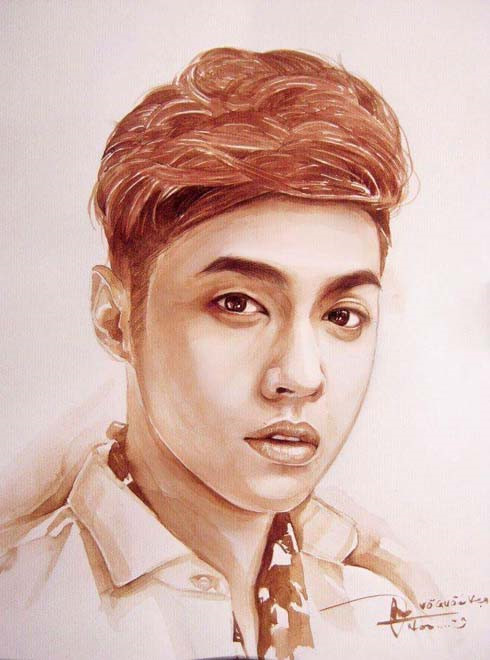 Chân dung ca sĩ Sơn Tùng MTP vẽ bằng cà phê