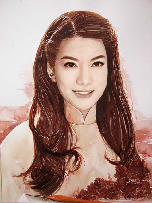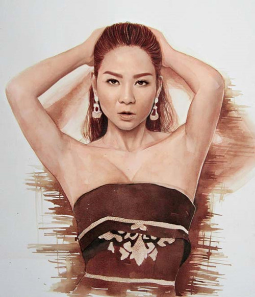 Chân dung ca sĩ Thu Minh vẽ bằng cà phê