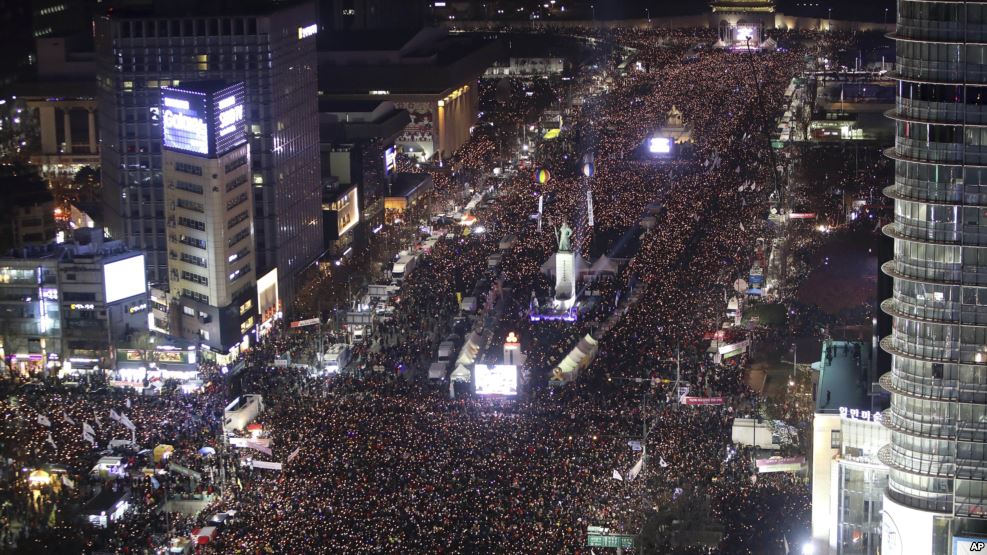 Con đường lớn trung tâm Seoul kín đặc người còn hơn ngày đón năm mới. Tất cả tập trung biểu tình phản đối tổng thống Hàn Quốc và yêu cầu bà từ chức. Bà Park có thể sẽ phải từ chức và trở thành người đầu tiên rời nhiệm sở sớm trong ô nhục.