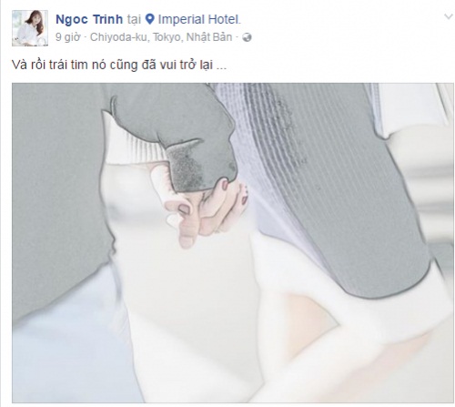 Dù bức ảnh chỉ chụp tay và đã được làm mờ nhưng nhiều người vẫn đoán rằng, người mới của Ngọc Trinh ở đây không ai khác chính là ông bầu Vũ Khắc Tiệp. Thời gian này, Ngọc Trinh và Khắc Tiệp đều đang có chuyến lưu diễn tại Tokyo (Nhật Bản) và cả hai thường xuyên chia sẻ những hình ảnh thân thiết cùng nhau thậm chí là hình ảnh áo đôi. Tuy nhiên, trước câu hỏi của nhiều người, Ngọc Trinh đã không lên tiếng thừa nhận cũng như phủ nhận.
