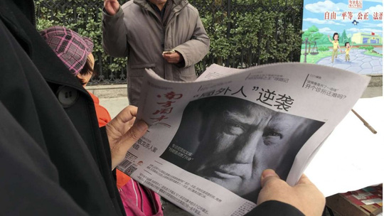 Ông Trump trên báo Trung Quốc ngày 10-11 Ảnh: AP