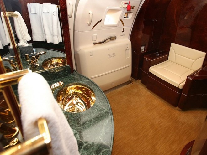 Nội thất dát vàng bên trong chuyên cơ của Trump. Ảnh: Pinterest .
