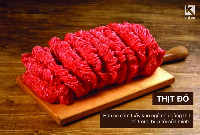 Những loại thịt có màu đỏ vốn được xem là loại thực phẩm khó tiêu, vì vậy, bạn nên hạn chế việc ăn thịt đỏ vào buổi tối. Bạn sẽ cảm thấy khó ngủ nếu dùng loại thực phẩm này trước khi đi ngủ. Chẳng ai lại muốn một giấc ngủ khó khăn và không tròn giấc, phải không?
