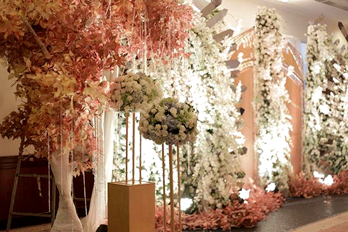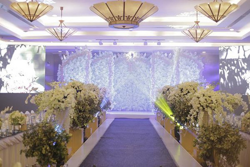 Sân khấu chính cũng được thiết kế cầu kỳ không kém với sáu cánh cửa được kết toàn bộ bằng hoa tươi.