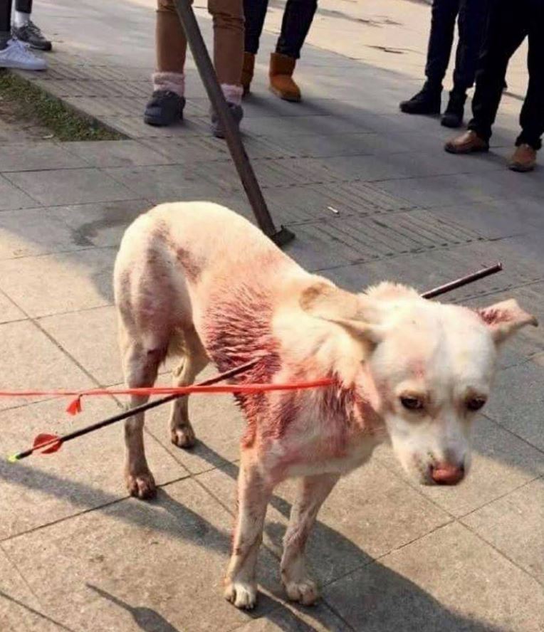 Chú chó bị hai mũi tên bắn xuyên qua người ở Trung Quốc
