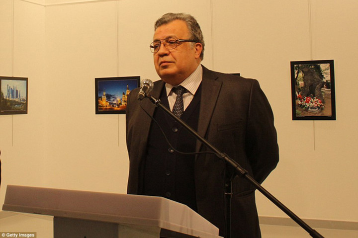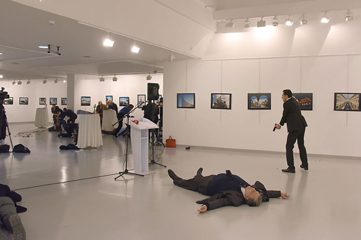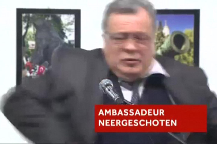 Vào ngày 19/12 Đại sứ Nga tại Thổ Nhĩ Kỳ đã bị một cựu sĩ quan cảnh sát Thổ Nhĩ Kỳ nổ súng bắn chết.Thật không thể tin,người đàn ông đứng ngay sau lưng Đại sứ Nga đang chuẩn bị thực hiện âm mưu giết hại ông.Nhìn lại hình ảnh Đại sứ Nga trước khi bị bắn.