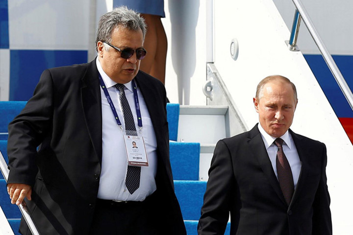 Đại sứ Nga Andrey Karlov hộ tống Tổng thống Vladimir Putin khi rời chuyên cơ Tổng thống tại sân bay Ataturk ở Istanbul, Thổ Nhĩ Kỳ vào ngày 10/10.