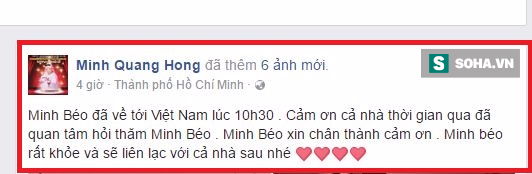 Minh Béo về VN việc đầu tiên là chia sẻ status trên Facebook như một lời chào. Độc giả không cần thứ đó, thứ họ cần là một lời xin lỗi. Theo như chia sẻ của một độc giả thì lời xin lỗi có vụng đến mấy vẫn tốt hơn là im lặng không nói gì để mọi việc cứ thế qua đi.