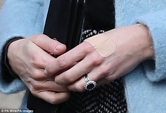 Xuất hiện sau khi tham dự buổi công chiếu bộ phim A Street Cat Named Bob, Công nương Anh gây chú ý khi có miếng dán urgo trên tay.