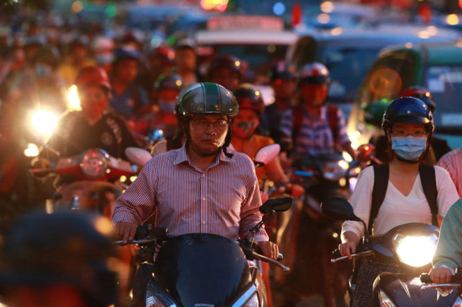 Được nghỉ Tết dương lịch 3 ngày, người người nhà nhà đổ về quê sum họp hoặc đi du lịch. Không phải vì mưa ngập nhưng các con đường lớn nhỏ và cửa ngõ sân bay Tân Sơn Nhất kẹt cứng ngày hôm qua. Nhiều giờ liền, người dân nhích từng bước một vẫn không thoát khỏi dòng người chật cứng và khói bụi ô nhiễm của xe cộ.