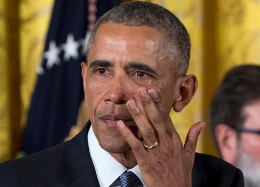 Ông Obama bật khóc khi nhắc về súng đạn khi phát biểu trong thông điệp liên bang đầu năm 2016 - Ảnh: NY Times